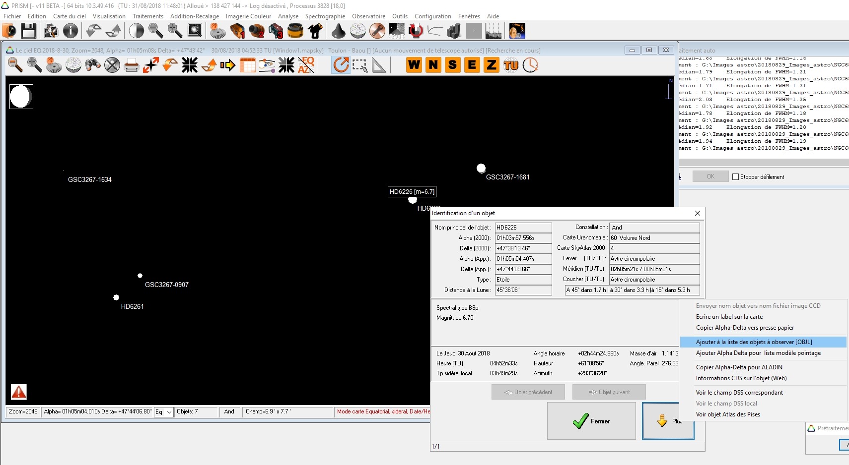 On peut préparer ses observations avec PRISM 64 bits. Pour enregistrer la liste des objets à observer (OBJ), je procède ainsi :