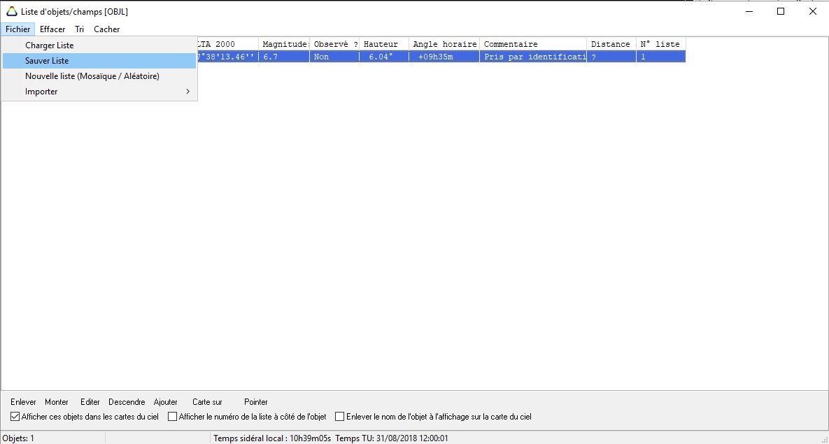 Mais je n'ai pas trouver comment la sauvegarder... Le menu "observatoire" est globalement inaccessible en 64 bits (la raison en est claire et ne me contrarie pas).. mais pourquoi avoir interdit la sauvegarde d'une liste d'objets...