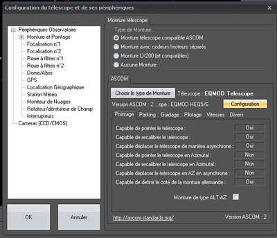 Oui j'utilise ascom et eqmod avec mon ex eq6 et maintnenant l'AZ.Eric Viguier a écrit :tu utilises eqmod ? ou?