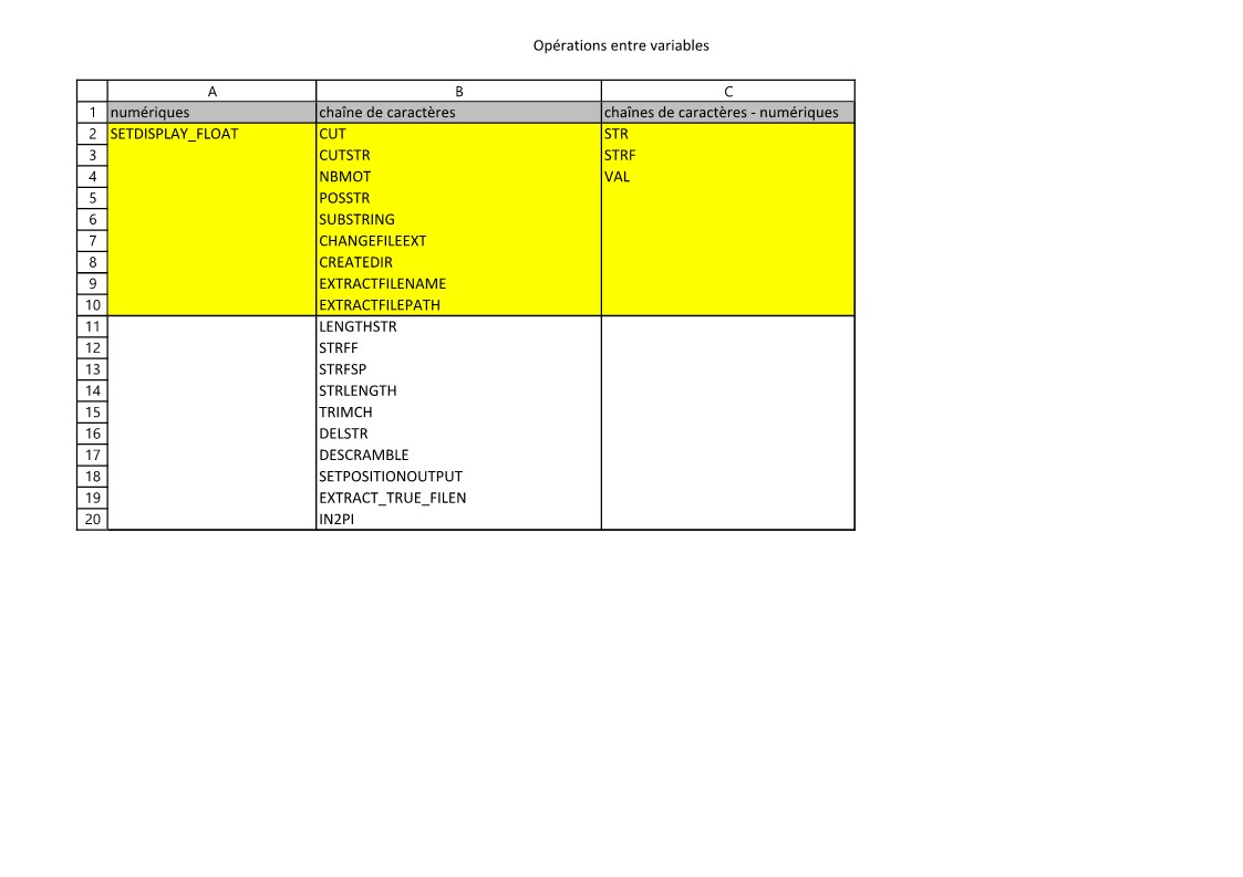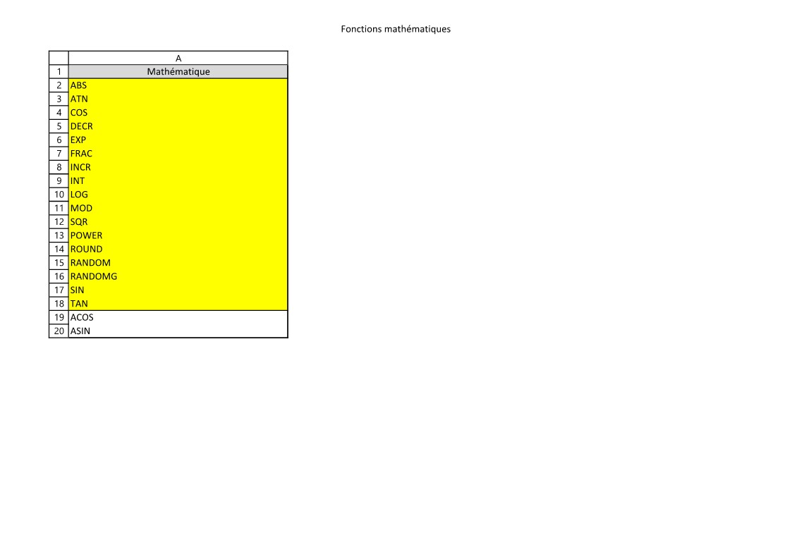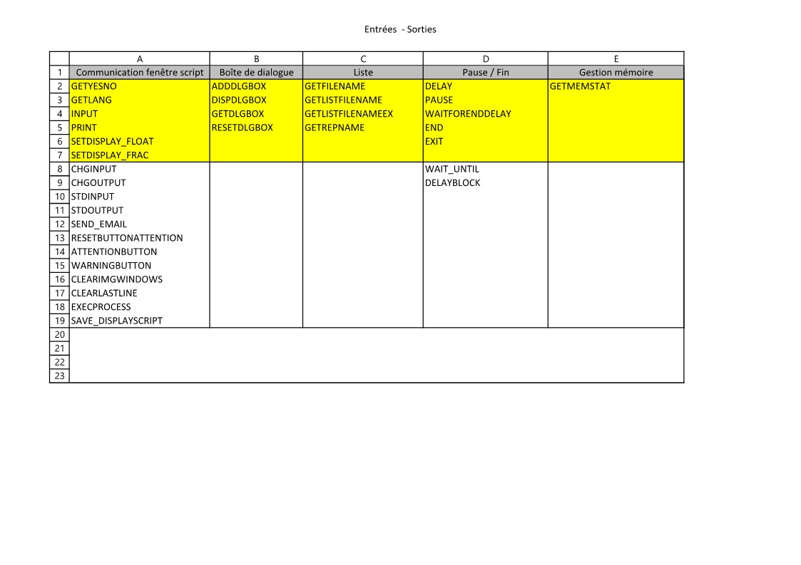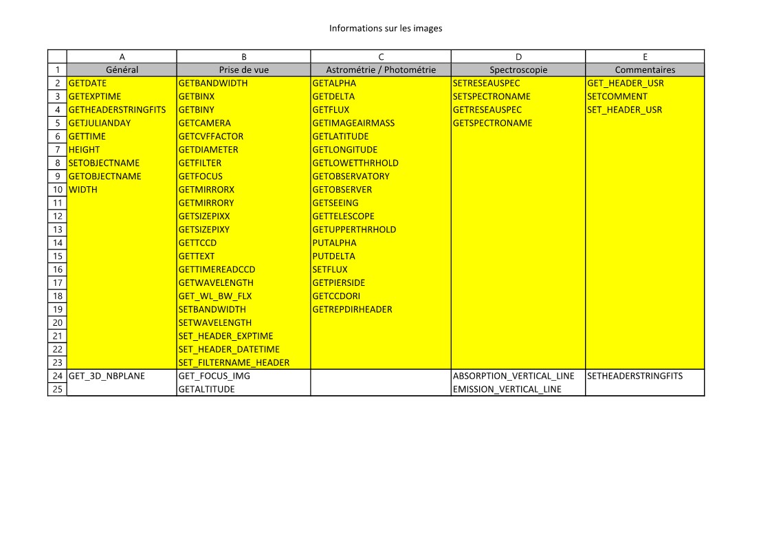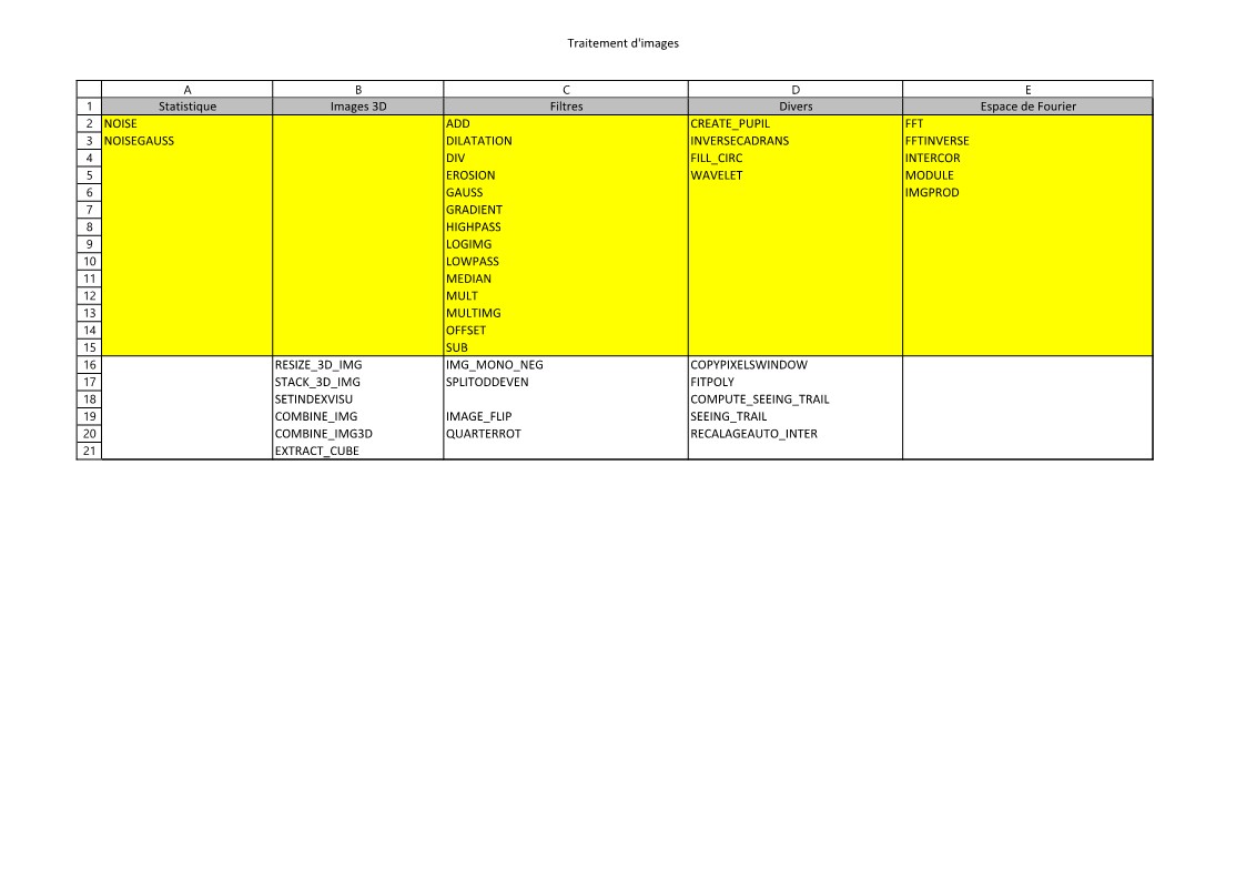 En fond jaune sont les fonctions dont vous trouverez l'aide ici.