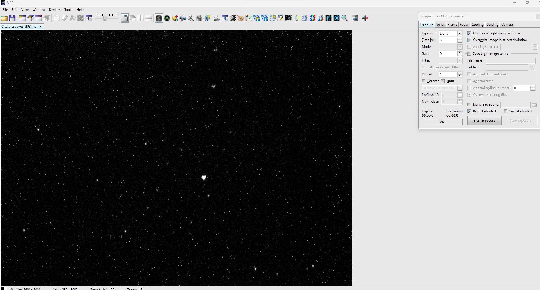 Il semble qu'avec les drivers ASCOM 64 j'aie réussi à faire que l'image soit ok (ici un dark de 3sec)