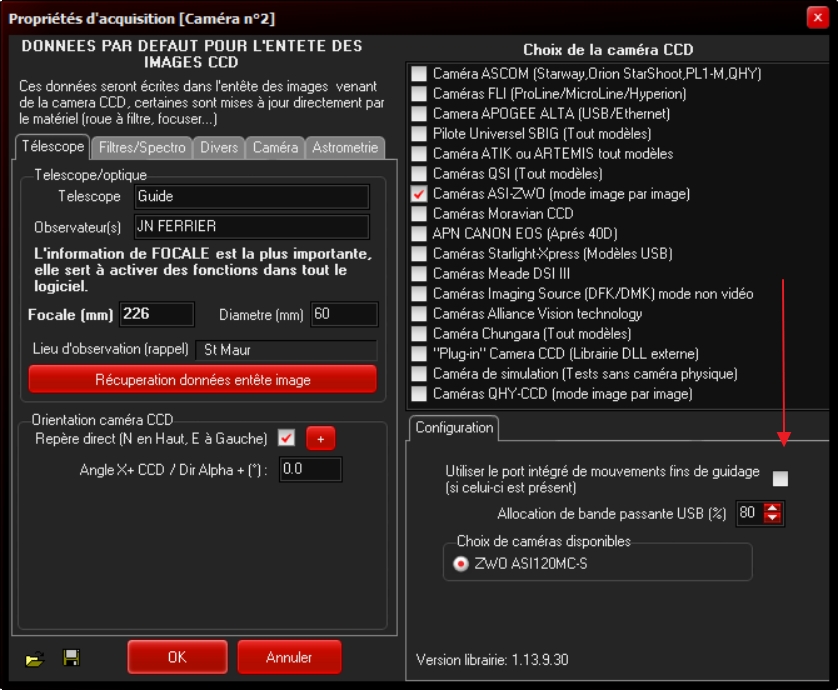 Bonjour à tous, J'ai demandé l'avis du support ZWO : ils ne voient pas l'origine du problème. C'est pourtant curieux que le phénomène soit le même avec deux caméras différentes, deux PC différent et qu'en même temps l'ensemble fonctionne avec d'autres logiciels, tant en prise de vue qu'en autoguidag...