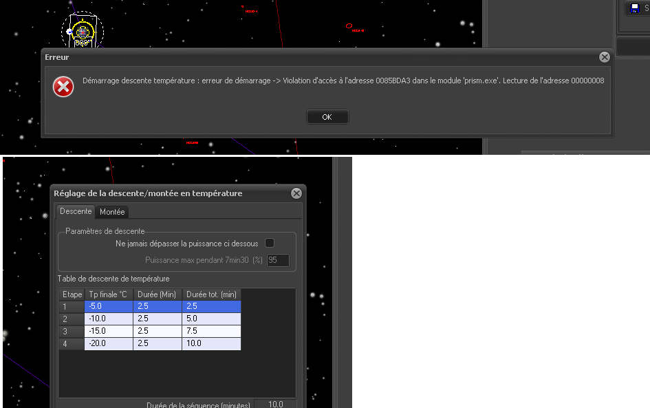 Je n'ai jamais eu de problème avant, mais c'est la première fois que j'utilise PRISM depuis octobre, il y a eu depuis au moins deux mise à jour PRISM et des changements drivers ATIK.