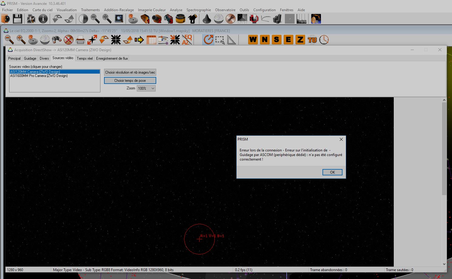 ASCOM et directshow sont mutuellement exclusifs, ca ne peut pas marcher comme ca.l'ASI 120 est paramétrée en camera ASCOM pour pouvoir l'utiliser en mode Directshow