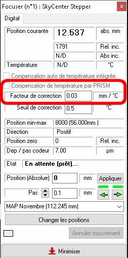 Mon système de focalisation (Pierro-astro + moteur Robofocus) ne me donne pas la température. Serait-il possible pour PRISM, dans ce cas, d'utiliser la température extérieure de la CCD.