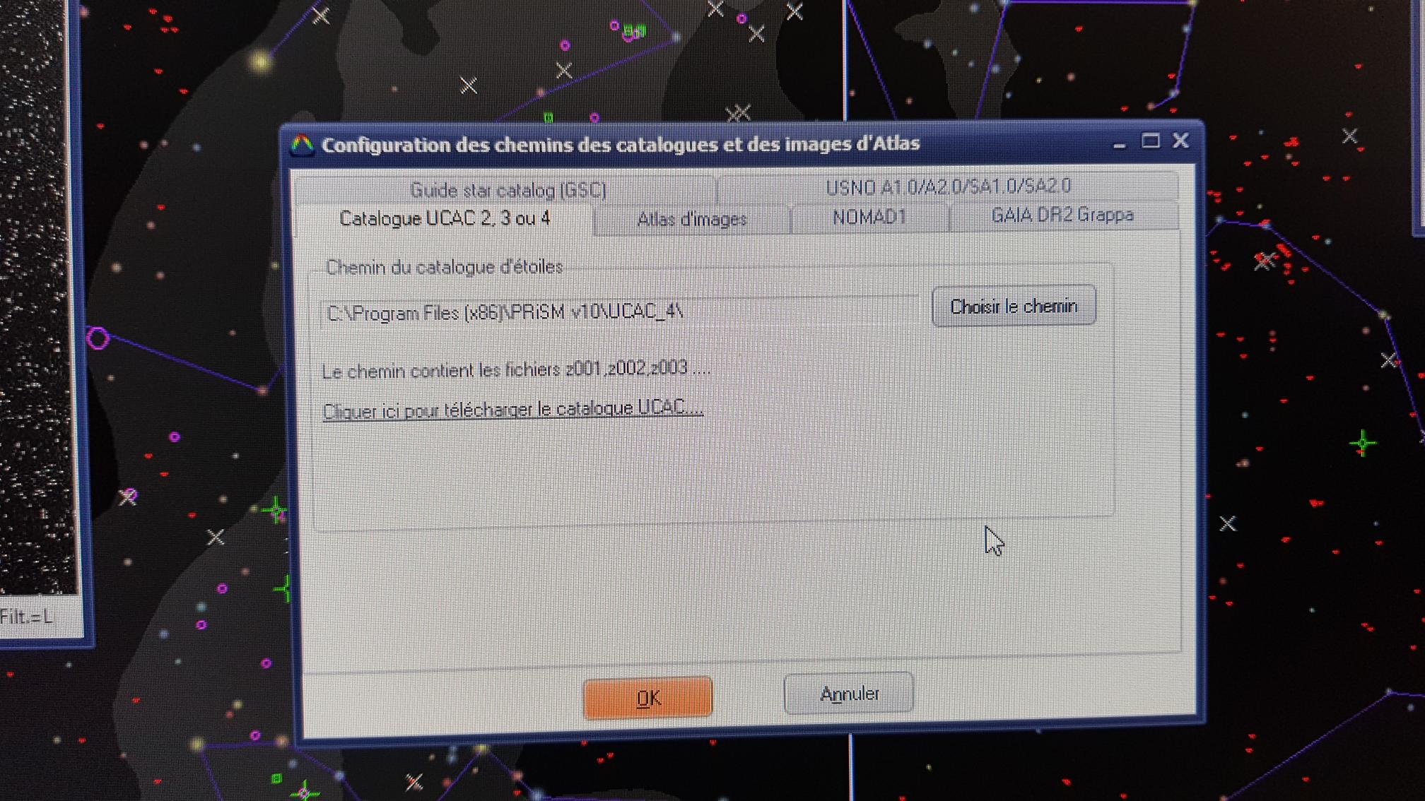 J'ai la dernière version de PRISM installée, tout fonctionne correctement, y compris les autres catalogues GSC-ACT, USNO ect...