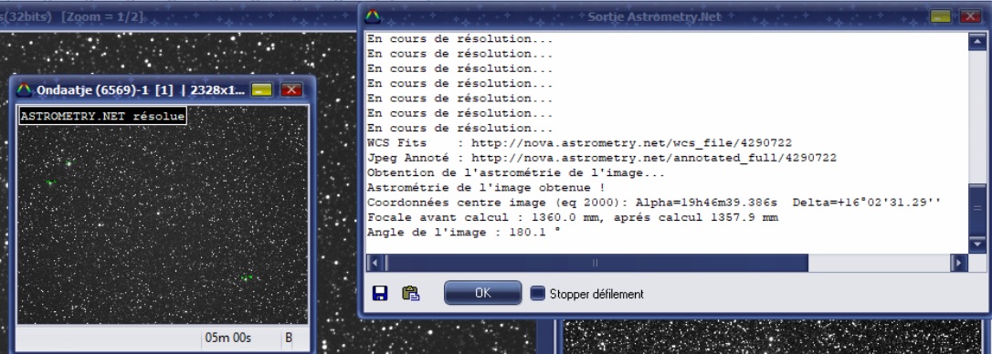 J'ai placé mes images sur mon site internet. Tu pourras les télécharger et voir de ton côté. Elles sont prétraitées. Le texte complet de la réduction astrométrique y est également.