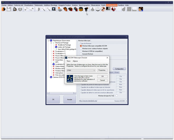 Le driver Ascom Cpwi est présent et actif.