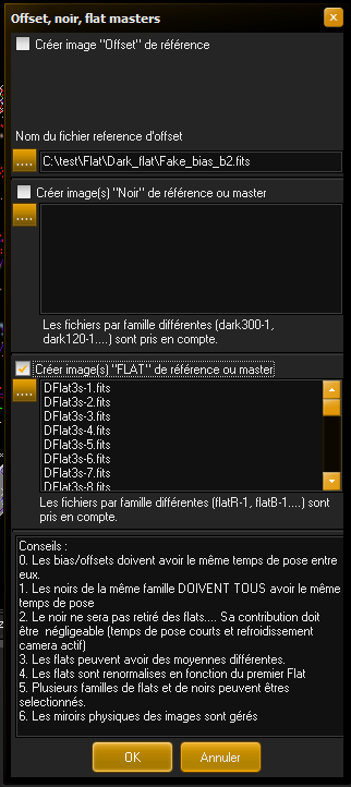 Il n'y a pas d'option permettant la prise en compte de Darks lors de la création du master Flat.