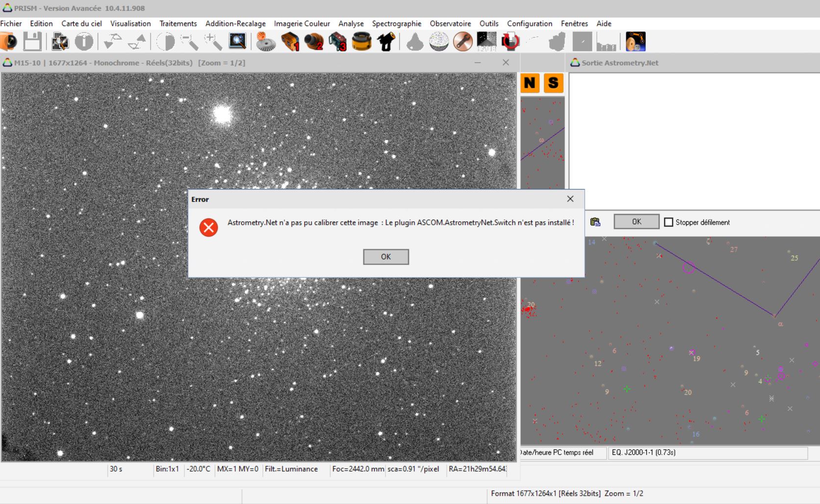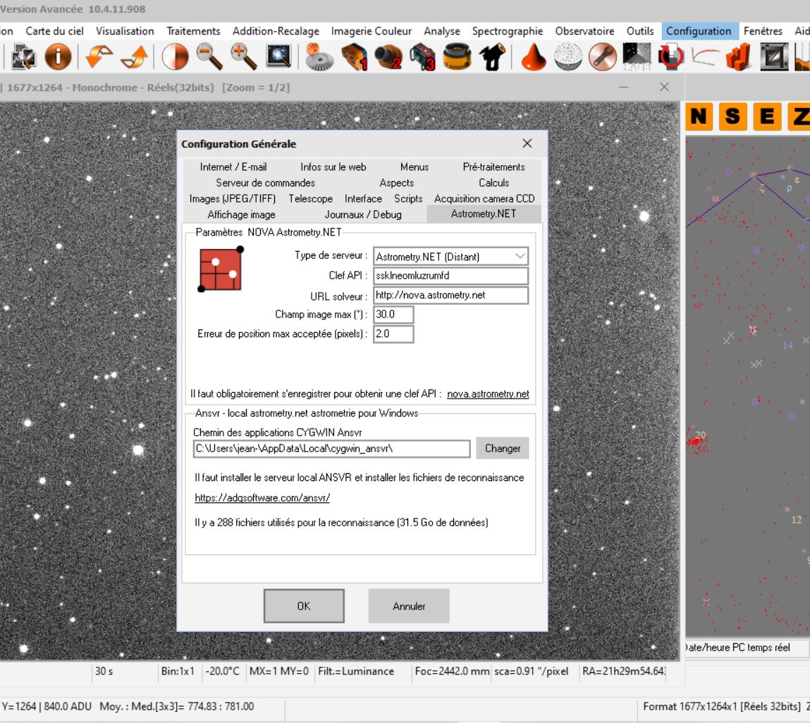 Hier soir j’ai eu un problème avec : « ASCOM.AstrometryNet.Switch » en voulant faire une recherche astrométrique avec Astrometry.net.