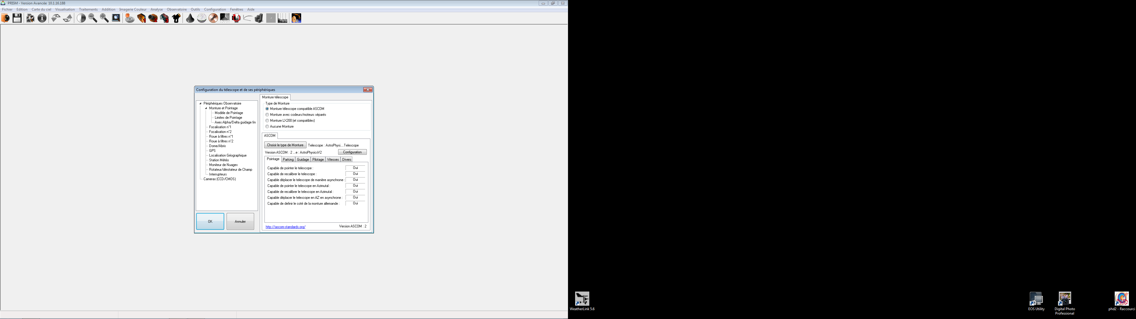 Cela signifie que la roue à filtre interne à l'Atik 9.0, ne s'affiche pas dans les onglets de gestion de la caméra au lancement de la caméra sous PRISM, mais indépendamment de la connexion de la caméra? Faut-il donc paramétrer la roue à filtre n°1 (>atik 9.0) dans les périphériques observatoire > monture et pointage> roue à filtre n°1...au même titre qu'un focuser par exemple