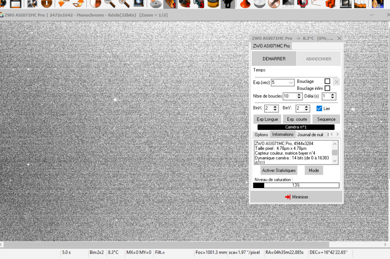 je fais des photos avec une camera ASI 071 Mc pro donc couleur, mais les entêtes des images n'indiquent pas la même chose.