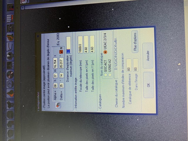 - Menu Analyse / Astrométrie / Etalonnage automatique
