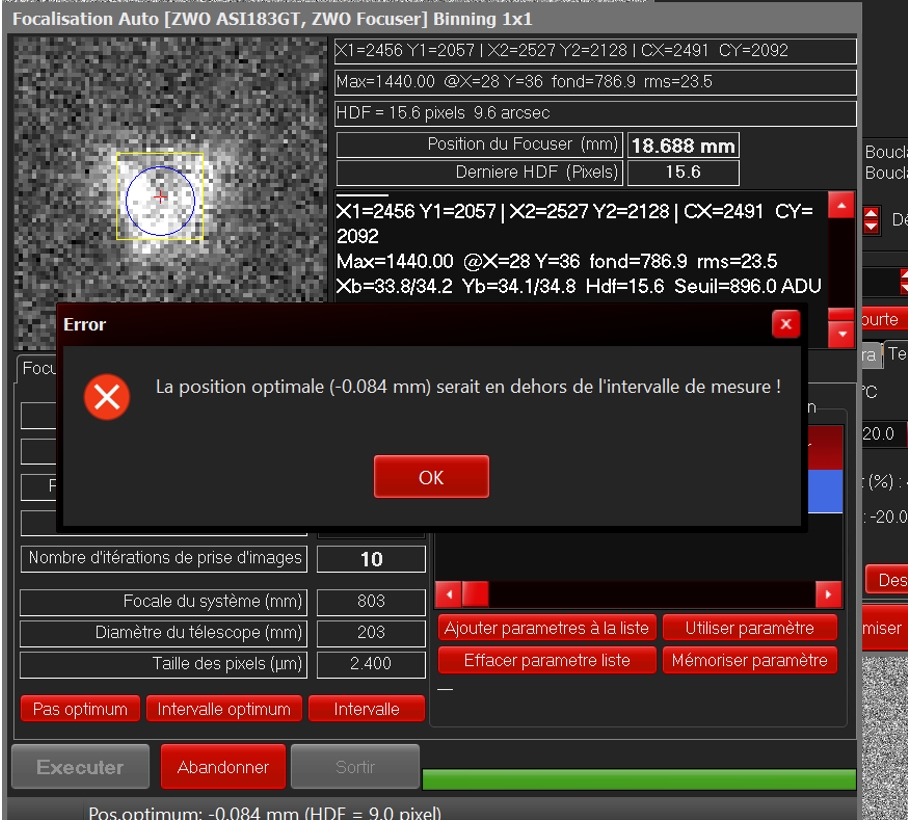 Premier réglage: en ne cochant pas "utiliser le focuseur avec des pas codeurs (sinon on sera avec des mm) dans "configuration générale de Prism"