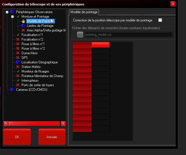 Je me suis lancé à créer un modèle de pointage comme expliqué sur le tuto, j’ai créé les calculs de du cotés est et du cotés ouest. (J’ai une monture allemande) dans le tuto ont explique qu’il faut insérer s’séparément les fichiers est et ouest dans l’onglet modèle de pointage.