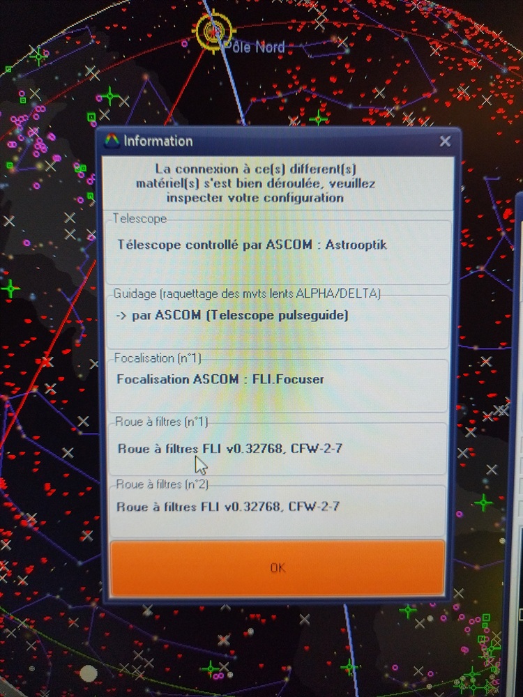 Merci pour la réponse. J'ai pu faire le test ce week-end et cela fonctionne parfaitement car avec le driver Ascom j'ai pu sélectionner la deuxième. Avec les drivers FLI ils n'étaient pas possible de sélectionner le port de communication.