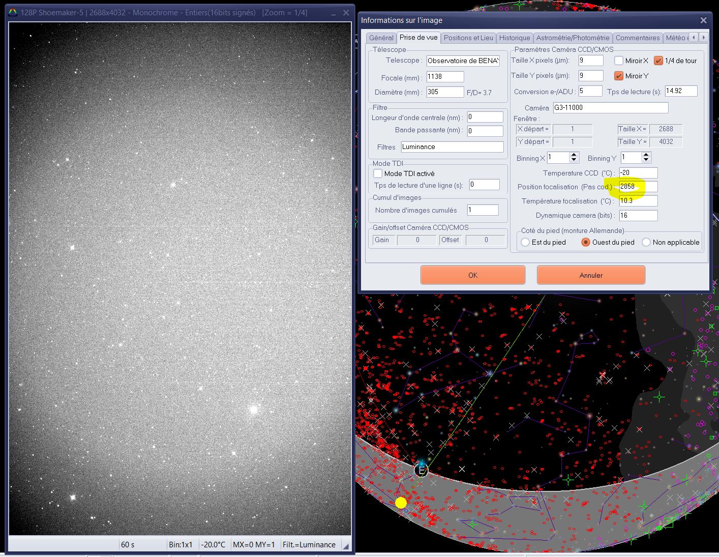 J'ai un soucis avec l'utilisation de la fonction "mesure tilt/courbure" J'ai ce message d'erreur : La position de focus de chaque image non renseignée entête image. Sur la capture d'écran montrant les informations de l'image la position du focuser est bien renseignée ! De même si je fais Edition/editer l'entête FITS la position y figure !