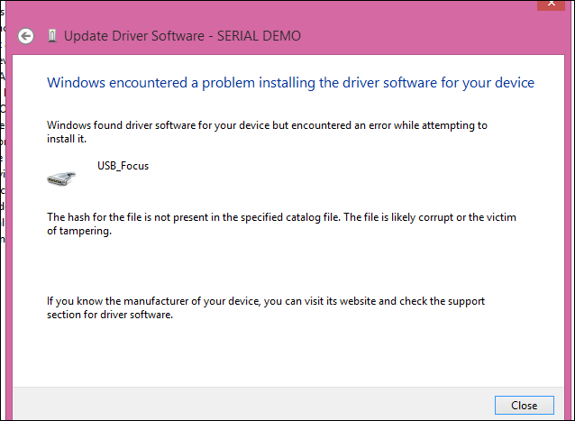la solution est simple, desactiver la signature des drivers sous Windows 8