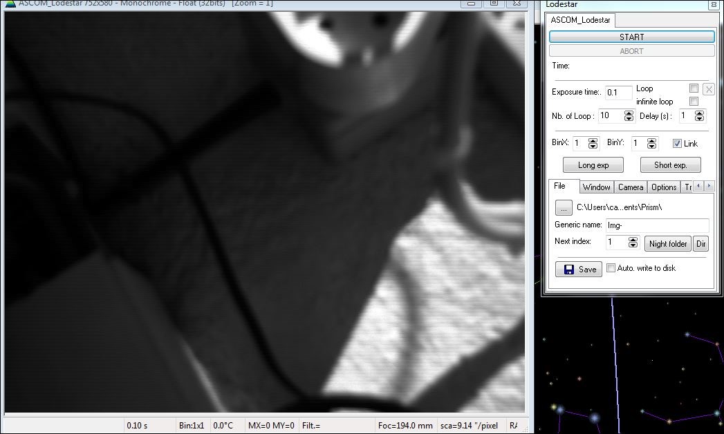 -- Portable + Prism en mode ASCOM : pas OK, latence d'affichage de l'image variable de 5 à 15 secondes