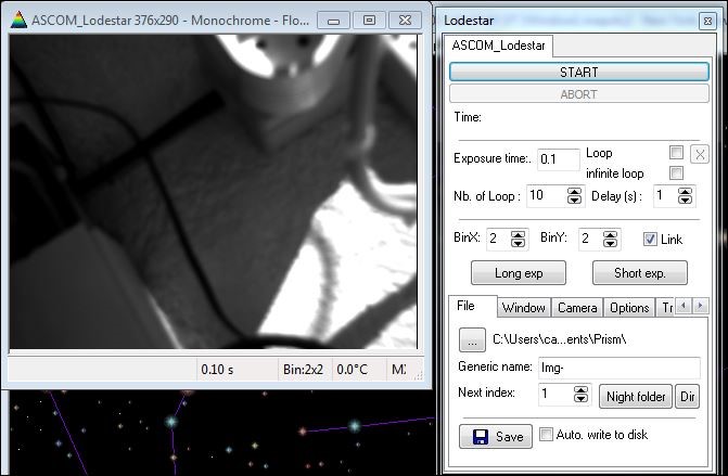 J'ai testé le driver Ascom pour la Lodestar. Le binning 2x2 fonctionne bel et bien, mais avec un problème sur mon ordi portable. J'utilise Prism sur deux ordis :