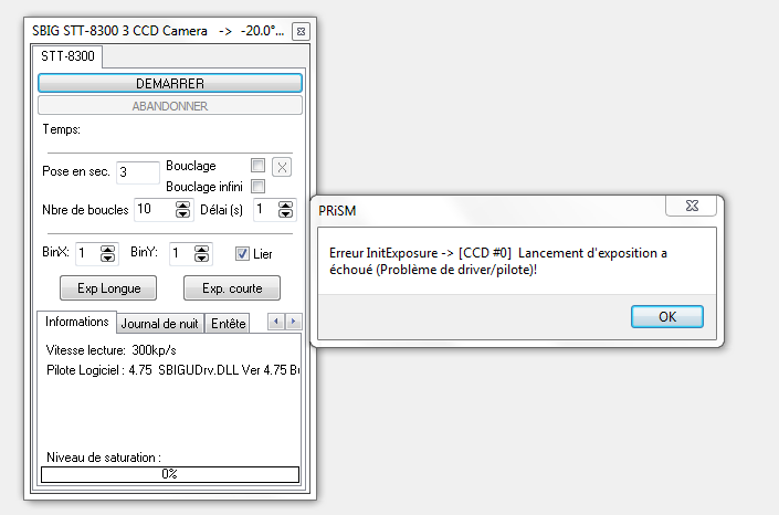 Je n'arrive pas à faire d'acquisition avec une caméra SBIG STT-8300.