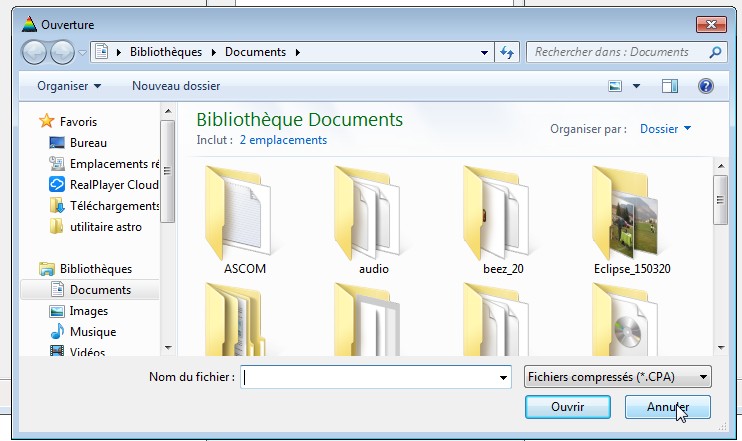 Une fois la fenêtre ouverte j'annule car je n'ai pas de dark à sélectionner et voici l'erreur :