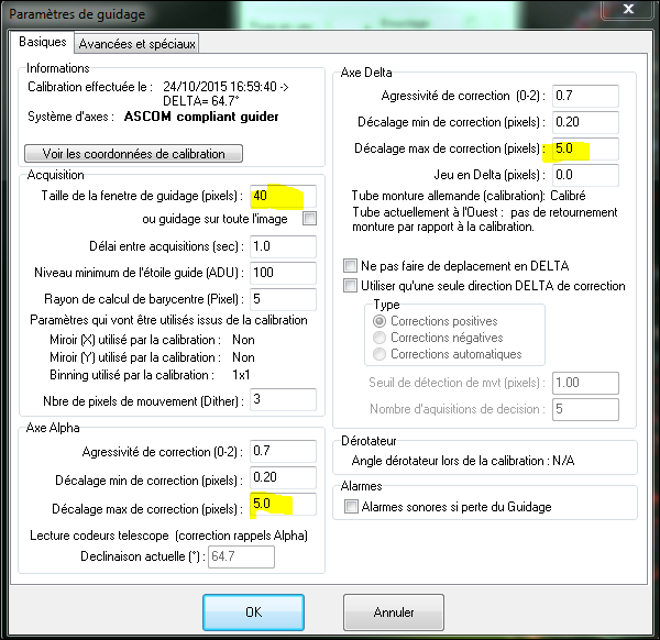 Les nuits se suivent mais ne se ressemblent pas! Ce soir, impossible d'autoguider. PRISM me donne ce message : mouvement trop important en alpha 5.7>4.0.