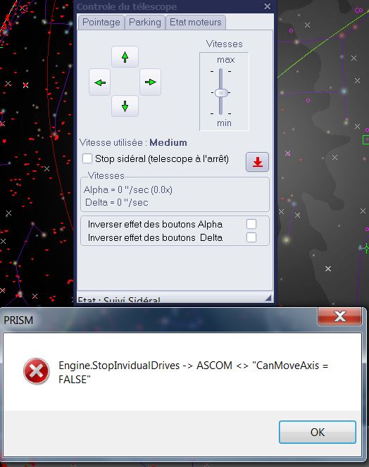 Lorsque j'active le suivi sidéral j'ai une raquette de contrôle pour pouvoir commander la monture et la j'ai des erreurs qui s'affichent (photos jointes)