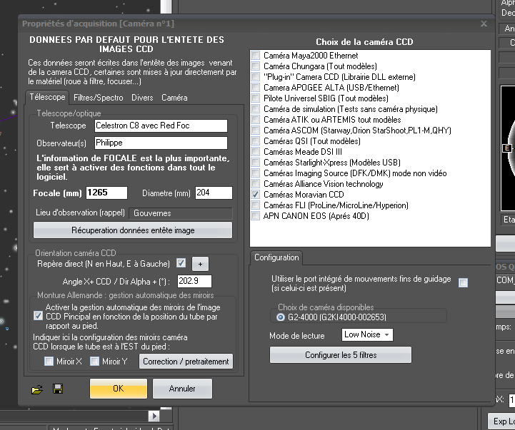 pour info configuration de la caméra :