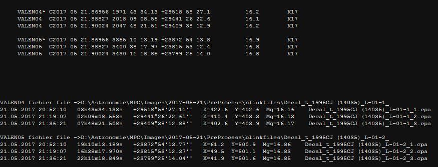 Voici un exemple des résultats obtenus pour le même astéroïde avec Gaïa et UCAC 4 (voir également annexe) :
