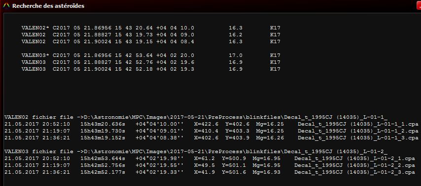 Voici un exemple des résultats obtenus pour le même astéroïde avec Gaïa et UCAC 4 (voir également annexe) :