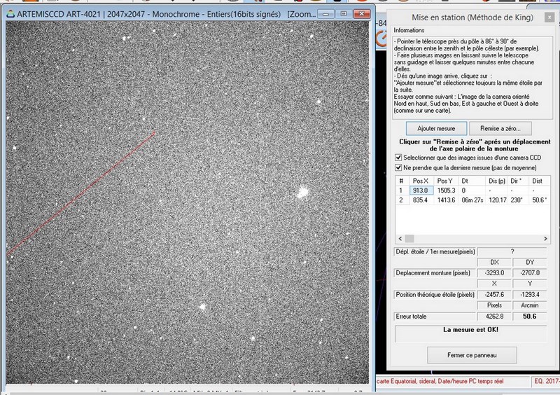 Le déplacement de la monture en plusieurs itérations, voir l’imprime- écran image 1, j’arrive à une minute d’arc