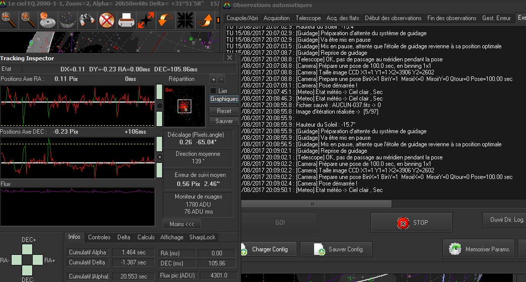Voici le compte tenu du fichier log en mode observation automatique alors que j'ai spécifié une valeur à 0.2 pixel dans la fenêtre de guidage: