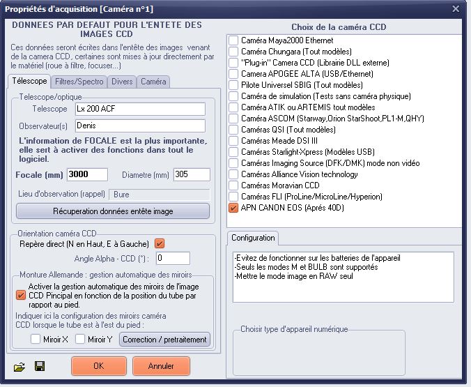 Je sais pas si il y a des options particulière pour le prétraitement pas APN sachant que j'utilise un CANON EOS 600D défiltré?