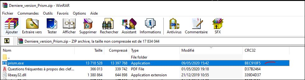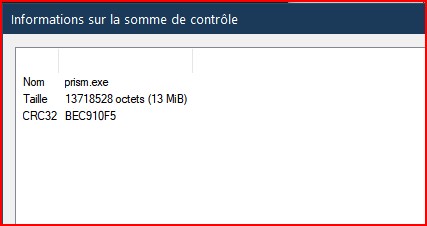 Prism est installé sur le disque F: pas le C:. C'était le sens de ce que je disais. Et donc, dans son répertoire F:\Program Files (x86)\PRiSM v10 où il fonctionne depuis pas mal d'années, si je remplace prism.exe par ce nouveau fichier, ça ne fonctionne pas. Prism ne démarre pas.