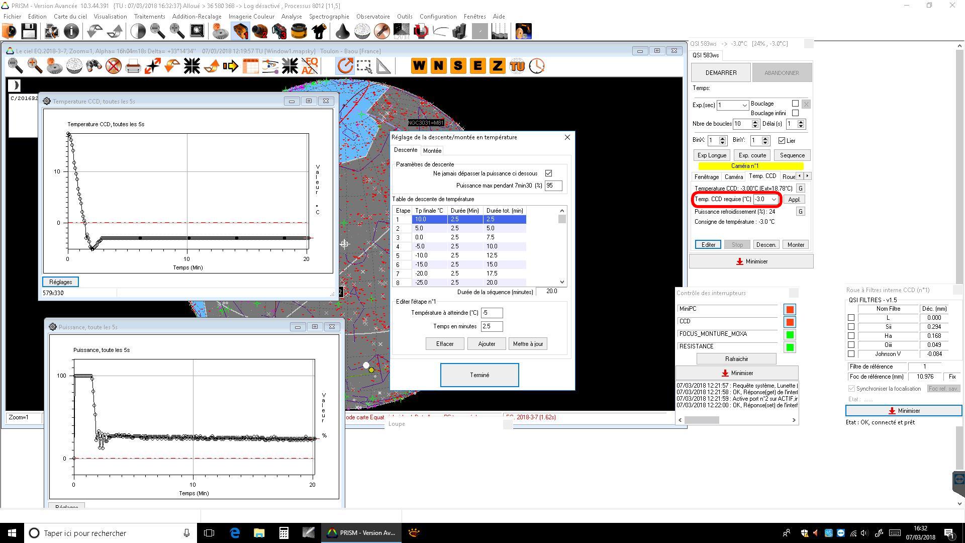 Caméra principale Acquisition CCD QSI583WSG pilote 2.8.26.0 du 16/11/2012 Firmware 5.2.6