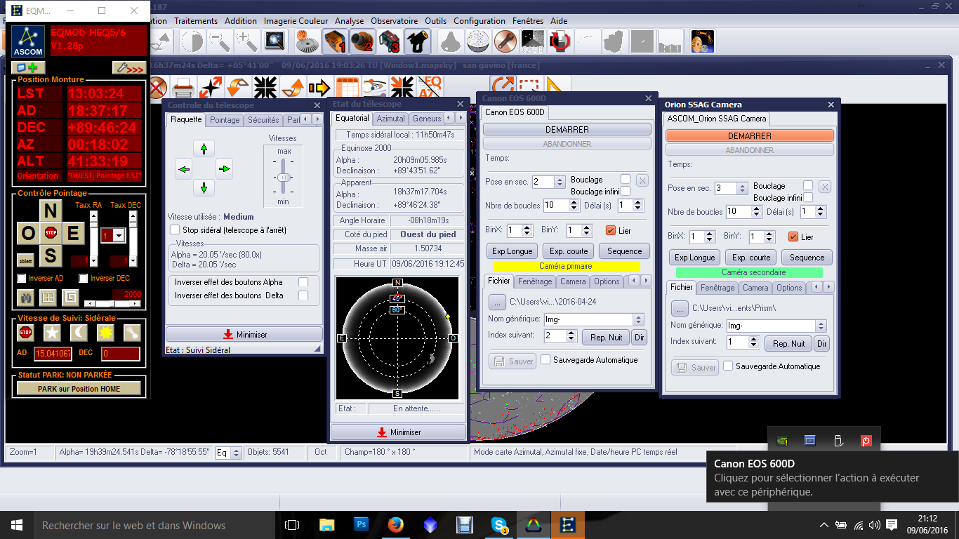 Nouvel essai ce soir avec prism 10 et starshoot d'orion pour la calibration et l'autoguidage.