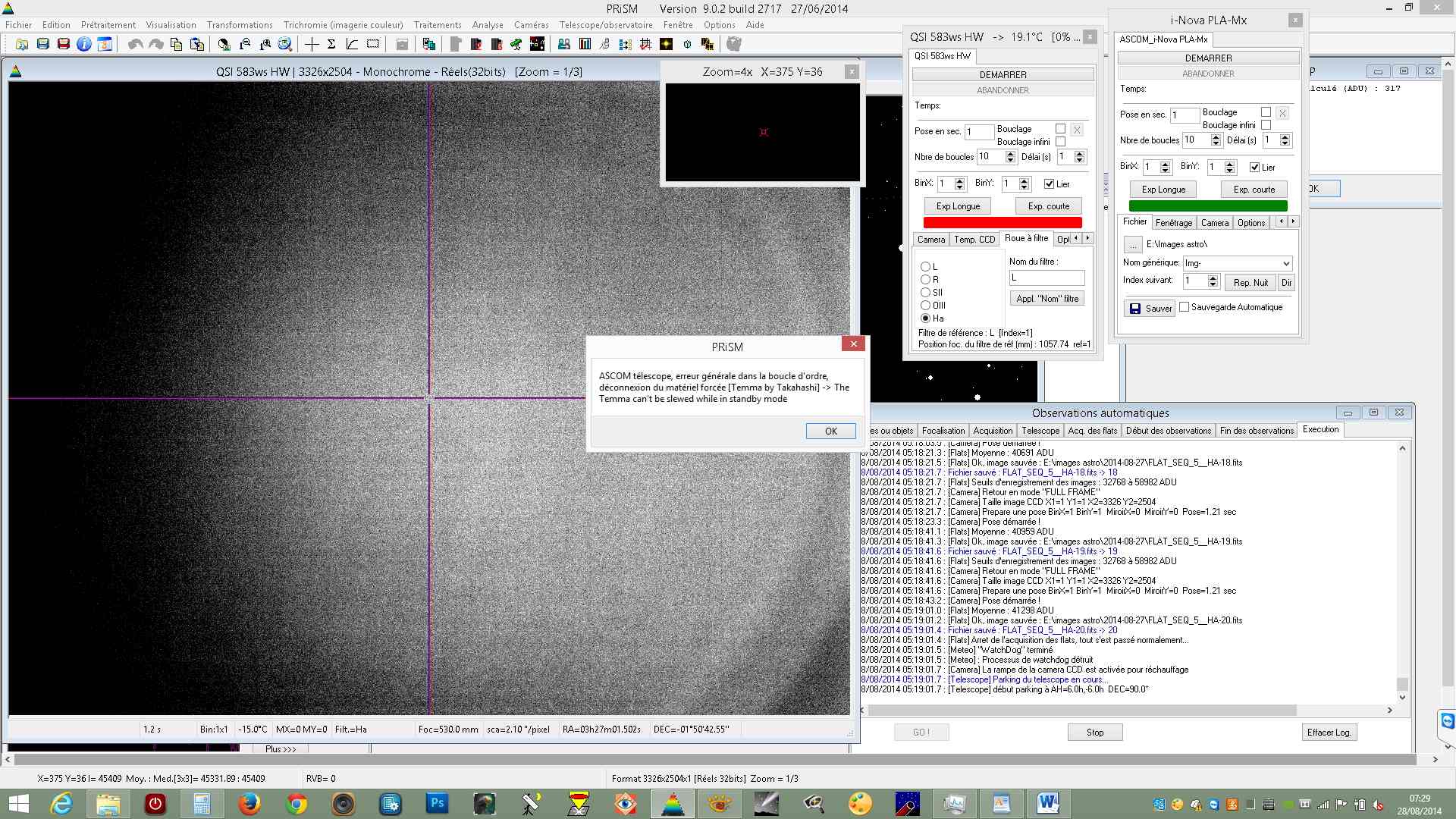 28/08/2014 04:40:52.0 : [Camera] Prepare une pose BinX=1 BinY=1 MiroirX=0 MiroirY=0 Pose=0.28 sec