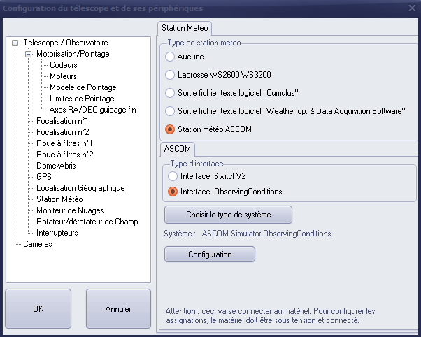 ASCOM 6 intègre maintenant une interface "observing conditions" qui intègre moniteur de seeing et station météo.