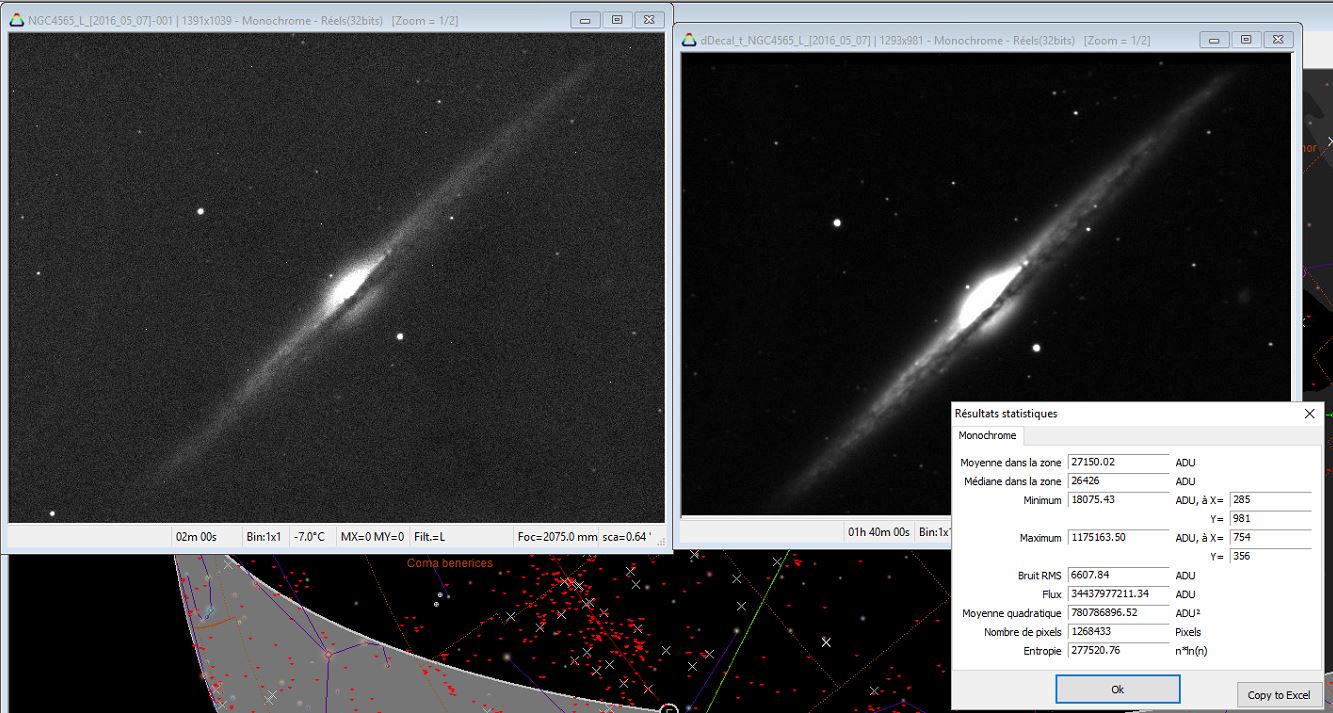Ceci dit, la parti traitement j'en ai fais un tout petit peu lorsqu'on "shootais" avec un APN mais la en passant en CCD, hop faut reprendre de 0. J'ai chercher un temps de pose idéal pour avoir des pose unique non saturé (mais a 16 bits je regardais avec la fonction Prism qui s'arrête a 20 bits) et lorsque je les ampiles j'ai l'impression d'avoir qqch de trop puissant. avec la fonction DDP j'arrive a des extrêmes trop grande j'ai du mal a ajuster ces paramètres en fait. plus tout les autres filtres et autres traitement qui existe. En lisant l'aide local ou en ligne je fais que de cliquer sur des trucs que je pige pas et au final je sais même plus ce que j'étais aller chercher