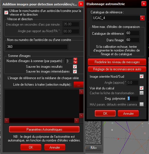 Voici l'écran de la reconnaissance des champs d'étoiles: