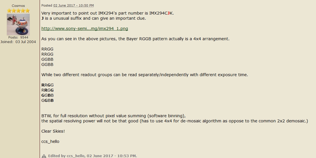 je me pose aussi la question de la matrice de bayer qui est un peu particulière
