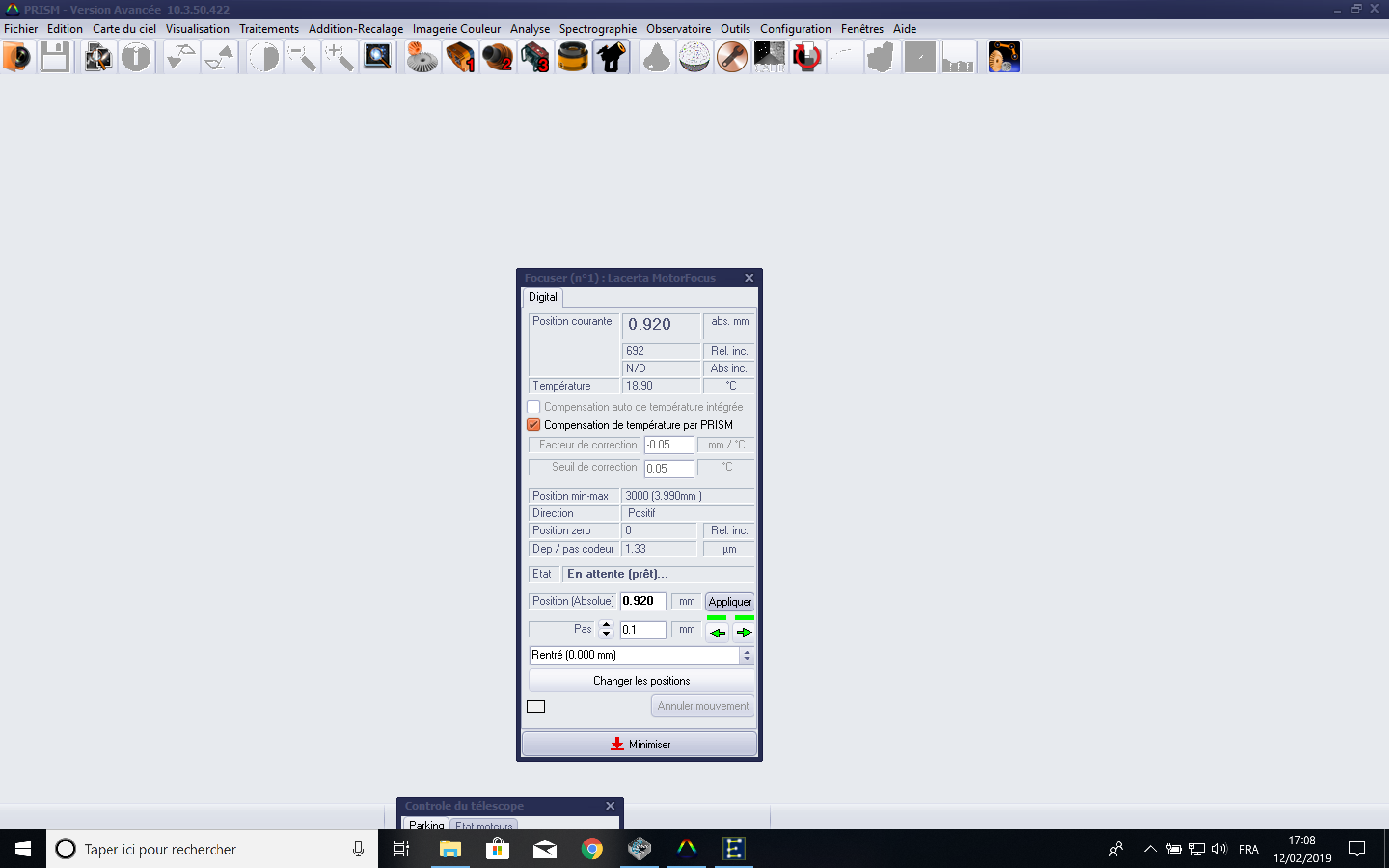 Jai un problème avec la compensation de température par Prism (V10.3.50.422)