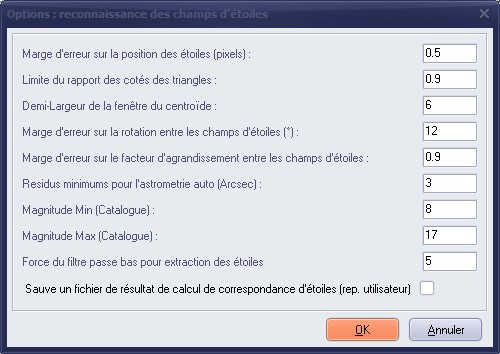Objet Résolution X Résolution Y Nb pixels Etoiles valides Catalogue Range check error lors de lancement de RMS