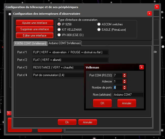 - 1 carte K8056 (Welleman) pour allumer l'alimentation 12V (monture, caméra) et pour allumer des LEDs d'éclairage.