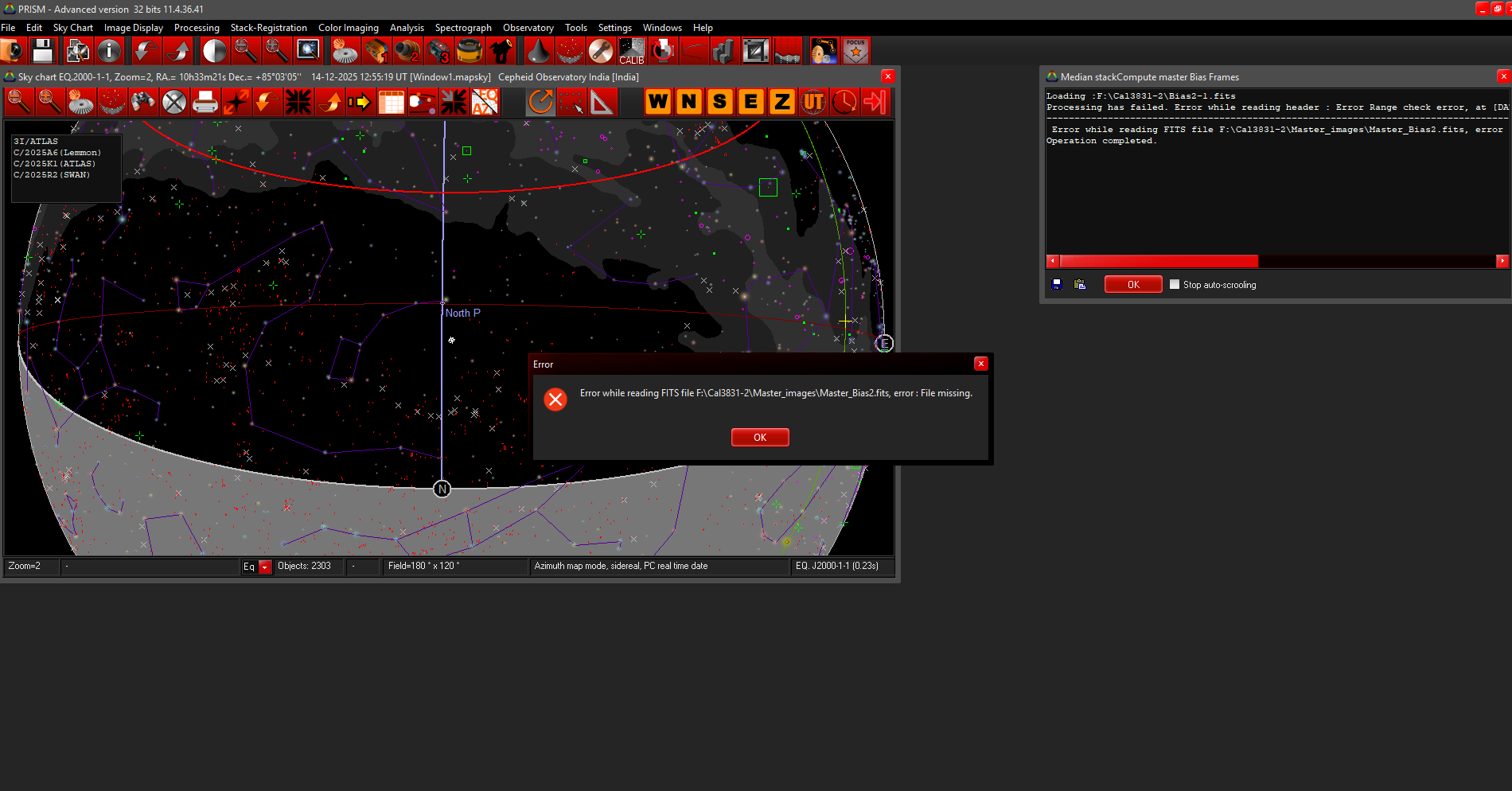 Unable to create master bias dark and flats